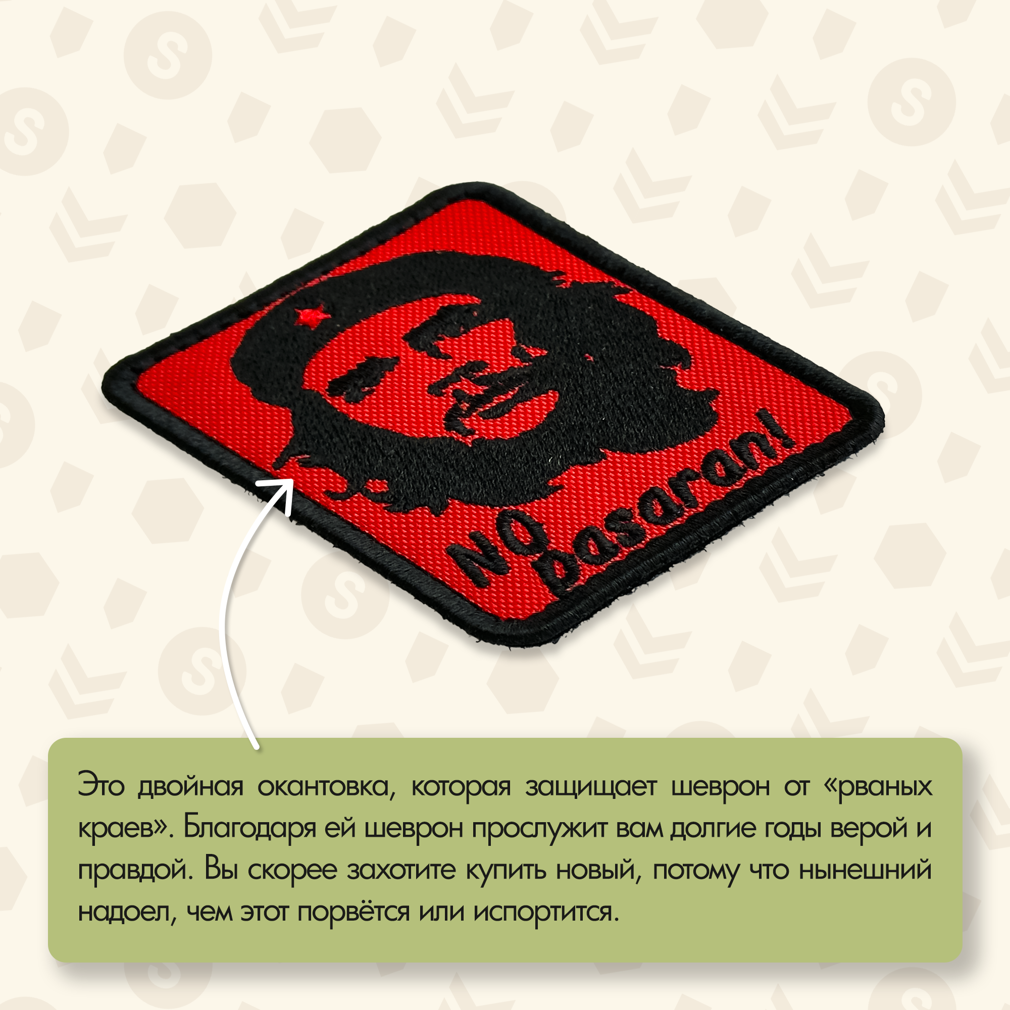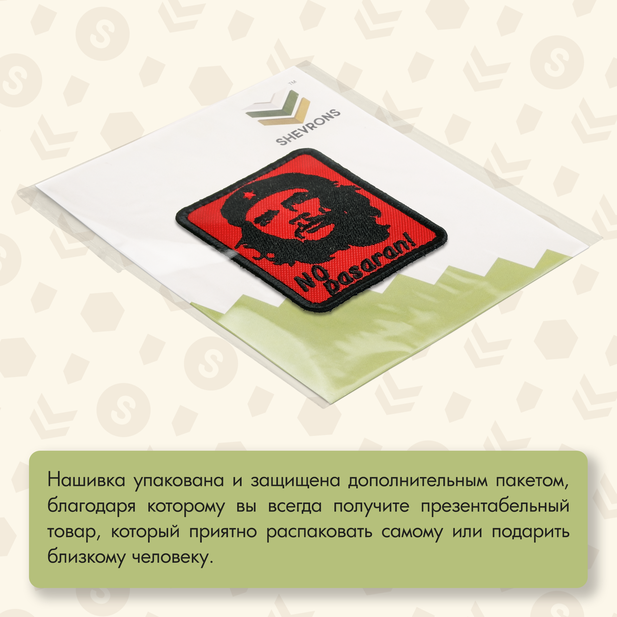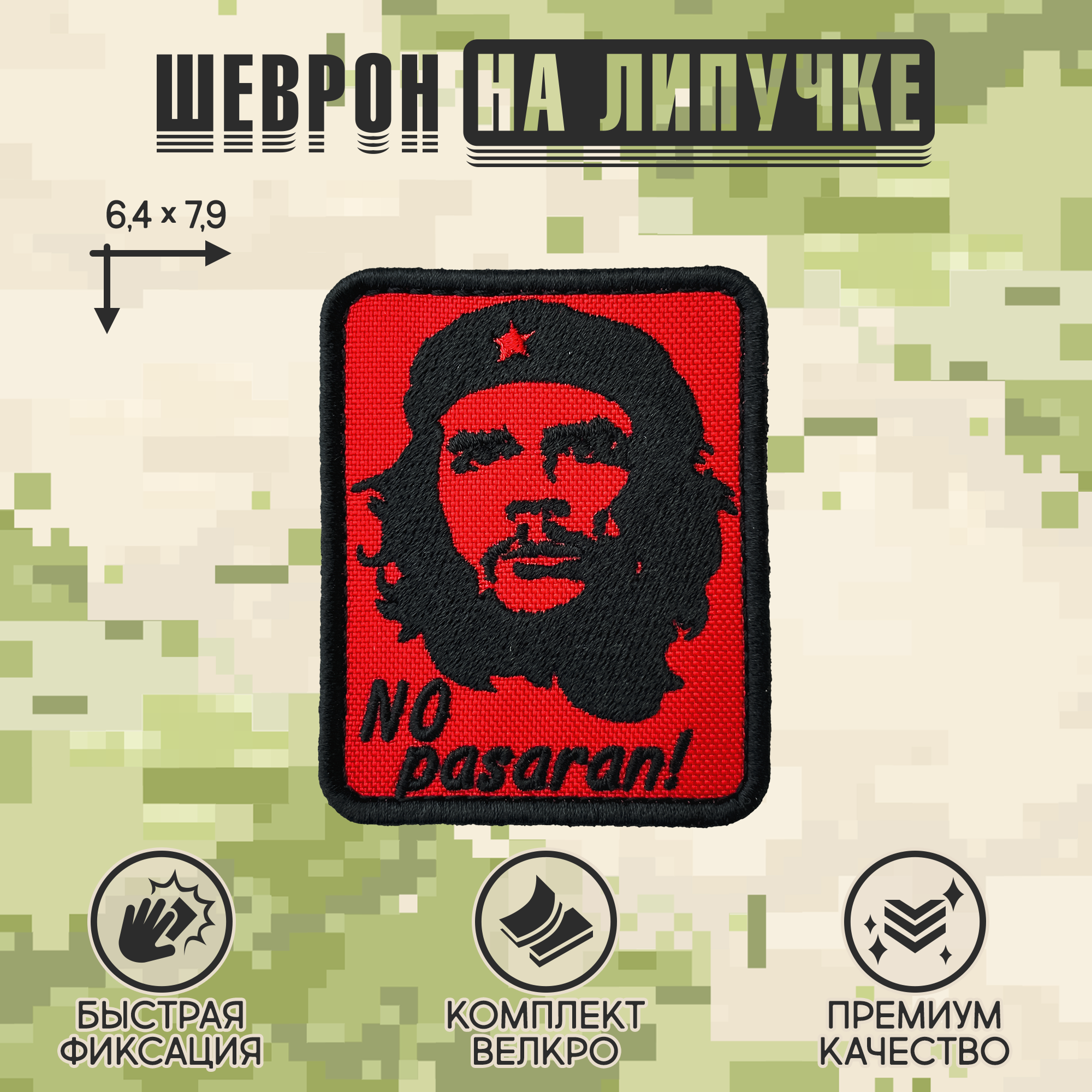 Приготовьтесь к революции в своем стиле с этим эпичным шевроном! На красном фоне изображен культовый портрет Че Гевары, символа борьбы и свободы, с решительным взглядом, который, кажется, смотрит прямо в душу. Слова "NO pasaran!" – знаменитый лозунг сопротивления, который означает "Они не пройдут!" – добавляют патчу еще больше силы и духа непокорности.