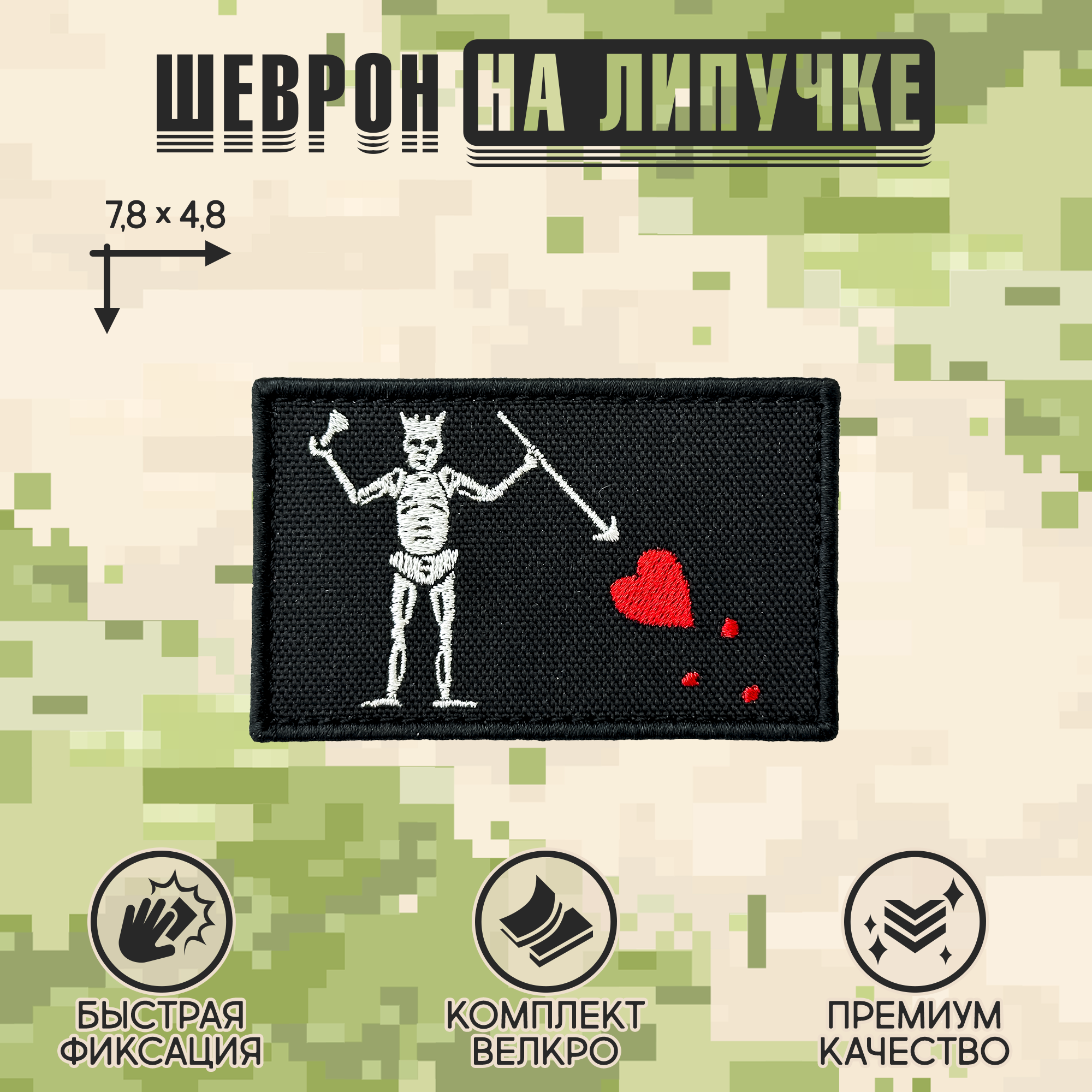 Легендарный Эдвард Тич, он же Черная Борода, собственной персоной! На этой нашивке изображен один из самых узнаваемых символов в истории пиратства – флаг самого грозного и харизматичного капитана семнадцатого века.